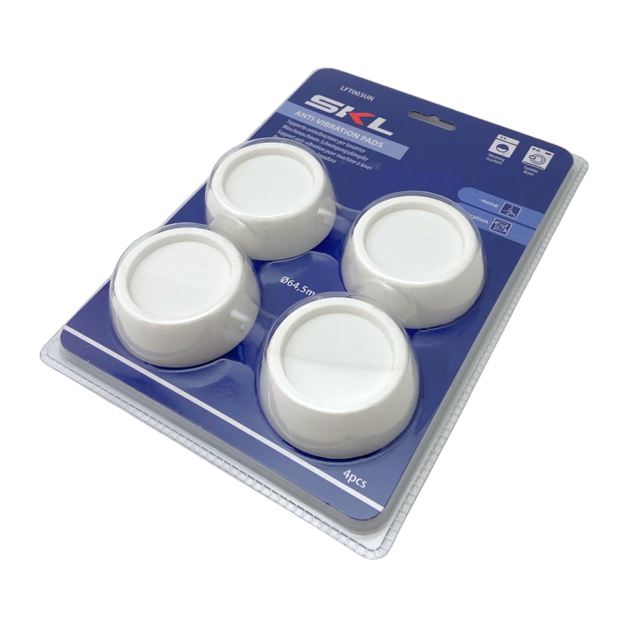 Антивибрационные ножки для стиральной машины диаметром 64,5 мм, комплект из 4 штук. Подставки снижают уровень шума, вибрации и колебаний во время работы машины, особенно при отжиме белья. Они предотвращают скольжение машины на керамической плитке и продлевают срок службы техники.