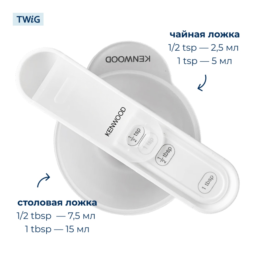 Мерный стакан объемом 450 мл для хлебопечки Kenwood KW702933 (KW712247) идеально подходит для точного измерения ингредиентов. В комплекте поставляется мерная ложка.