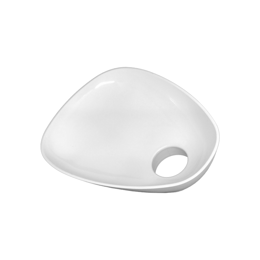 Габаритные размеры лотка составляют 195 мм в длину и 155 мм в ширину. Внутренний диаметр отверстия - 45 мм. Пластиковая конструкция белого цвета типа PMG1 рассчитана на установку на корпус шнека. Лоток устанавливается в штатное посадочное место и фиксируется на корпусе мясорубки.