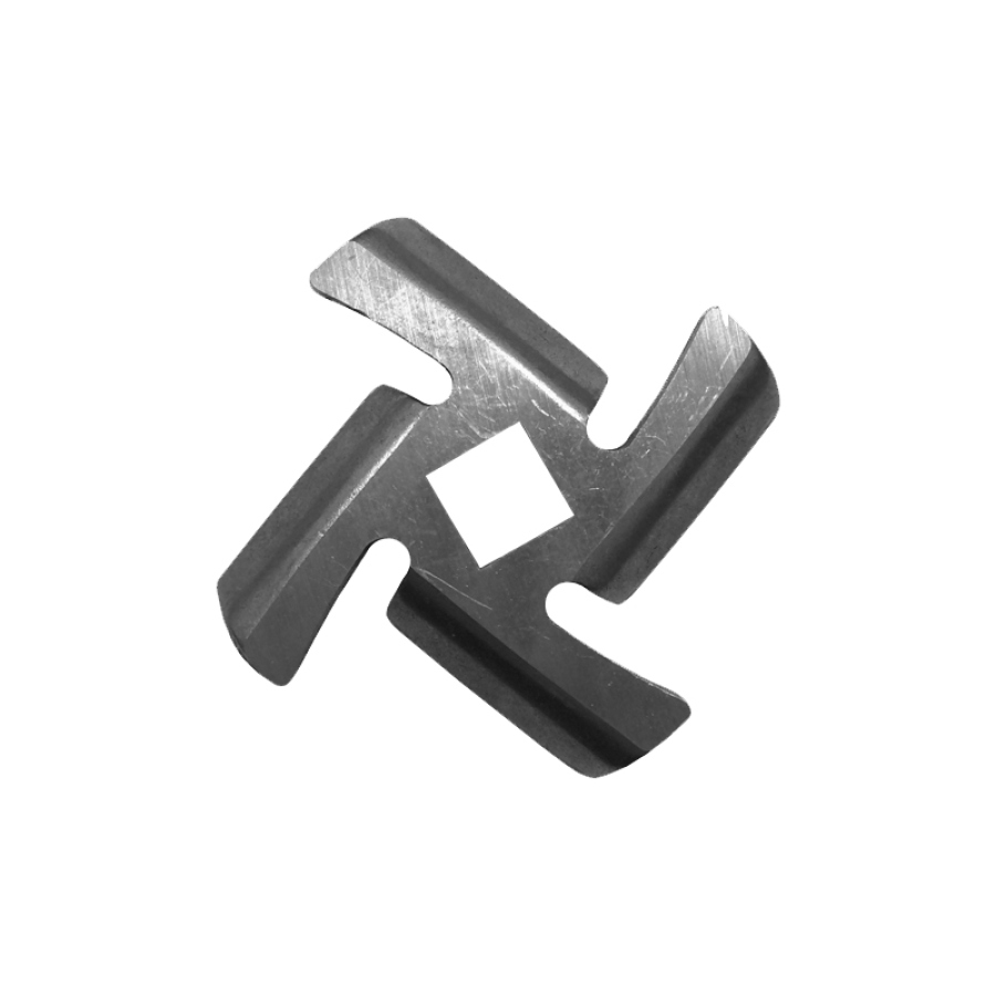 Четырехлопастная форма ножа гарантирует равномерное измельчение и предотвращает застревание продуктов. Конструкция имеет общий размер 46 мм, внутренний квадрат 9 × 9 мм и толщину 5 мм, что обеспечивает полную совместимость с моделью мясорубки Redmond RMG-1201.