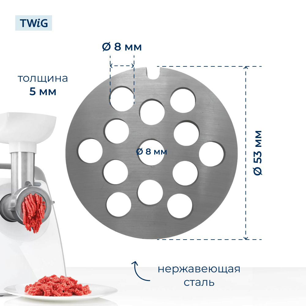 При установке решетка размещается после ножа, что обеспечивает эффективное измельчение и формирование нужной консистенции фарша. Подходит для моделей: Braun G1100, G1300, G1500, G3000, KGZ3, KGZ4, Power Plus 1100, Power Plus 1300, Power Plus 1500.