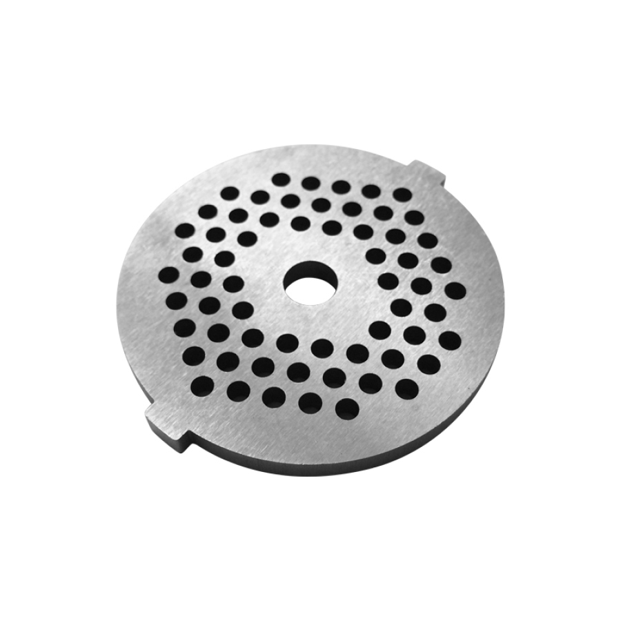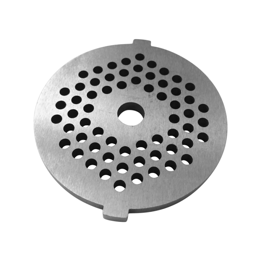 Решетка диаметром 53,5 мм с двумя выступами и отверстиями 3 мм создана для ультра-мелкого помола, идеально подходит для паштетов, суфле и деликатного фарша. Столь узкие отверстия обеспечивают особо нежную структуру измельченного продукта и позволяют сохранять сочность ингредиентов. Диск легко устанавливается в корпус шнека мясорубки, надежно фиксируясь благодаря предусмотренным выступам, предотвращает прокручивание и обеспечивает равномерное измельчение.