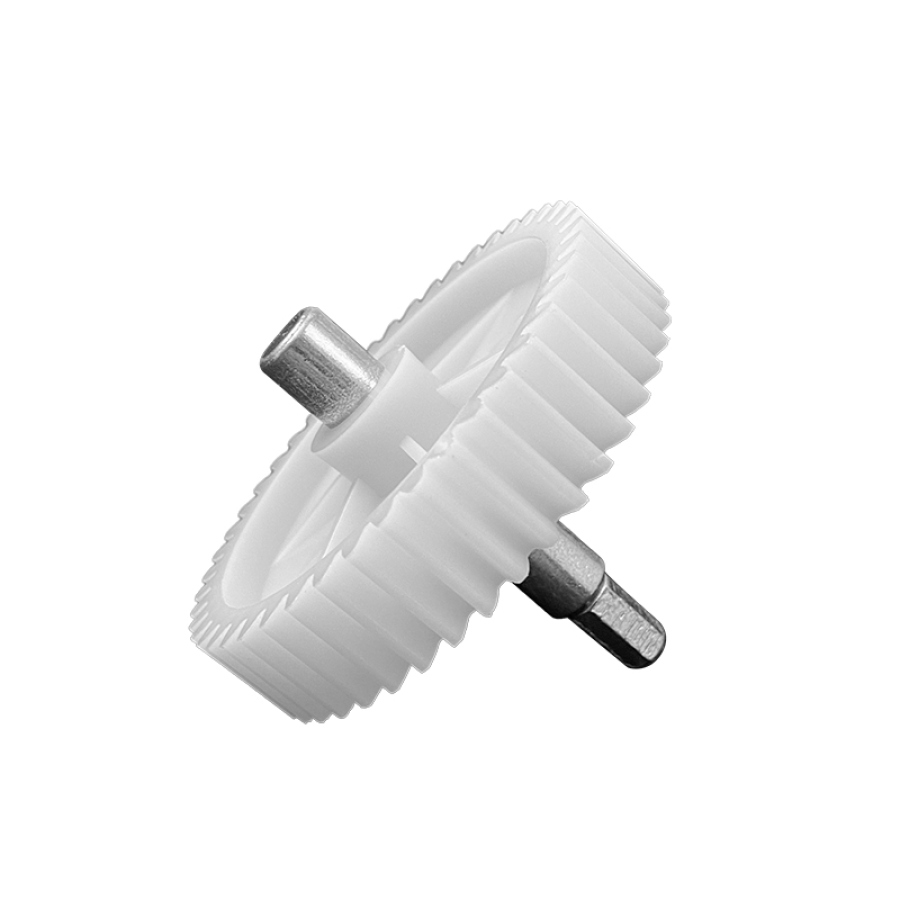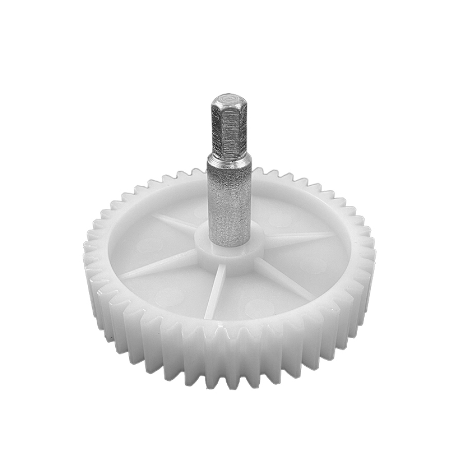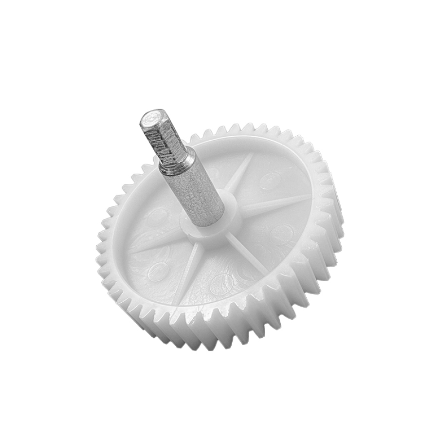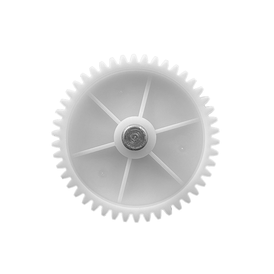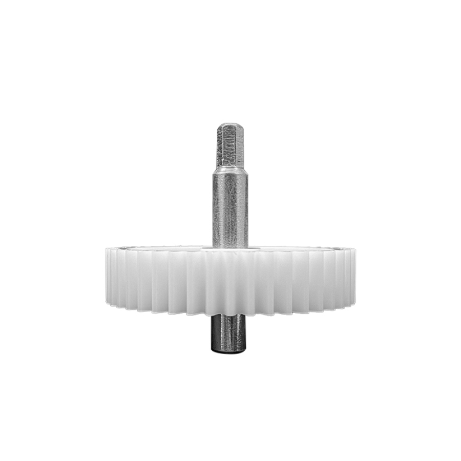Внутренний диаметр — 12 мм, внешний диаметр — 82 мм, высота — 76,5 мм, количество зубьев — 46; наклон зубьев прямой. Шестерня имеет пластиковое колесо и металлический вал, что повышает надёжность посадки и стойкость к износу. Профиль зубьев подобран таким образом, чтобы обеспечить стабильное зацепление и равномерную передачу усилия в узле редуктор мясорубки.