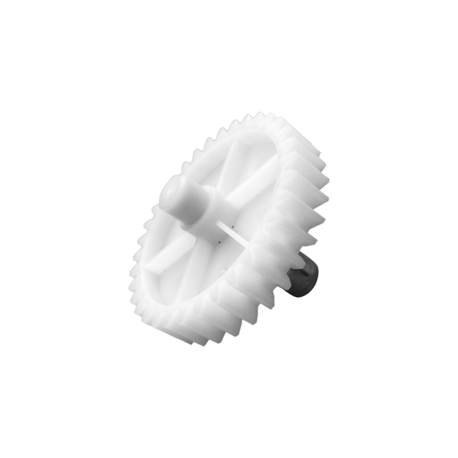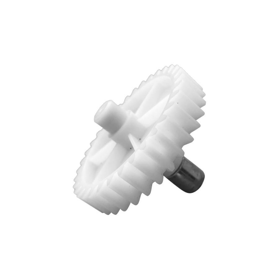 Изделие выполнено из комбинированных материалов: корпус шестерни изготовлен из высокопрочного пластика, а центральный вал — из металла, что значительно повышает надёжность узла и его устойчивость к деформациям под нагрузкой. Внешний диаметр составляет 72 мм, высота конструкции — 60 мм. Шестерня оснащена 34 зубьями с прямым наклоном, что гарантирует надёжное зацепление с ведущей шестерней и точную передачу вращательного момента в редукторе мясорубки. Металлический вал обеспечивает жёсткую посадку и исключает осевой люфт, что особенно важно при интенсивных нагрузках. Стандартная геометрия зубьев позволяет детали точно встраиваться в механизм без дополнительной регулировки.