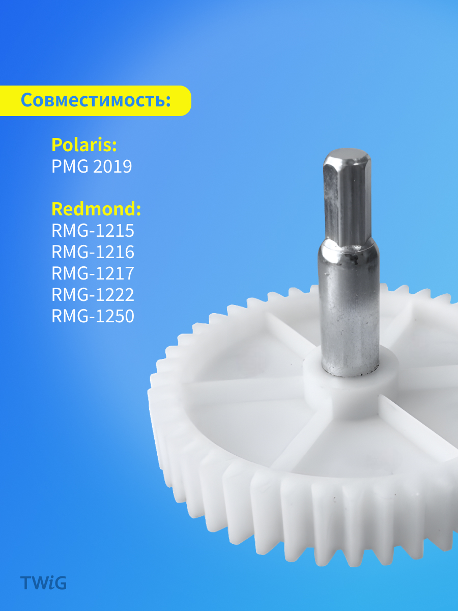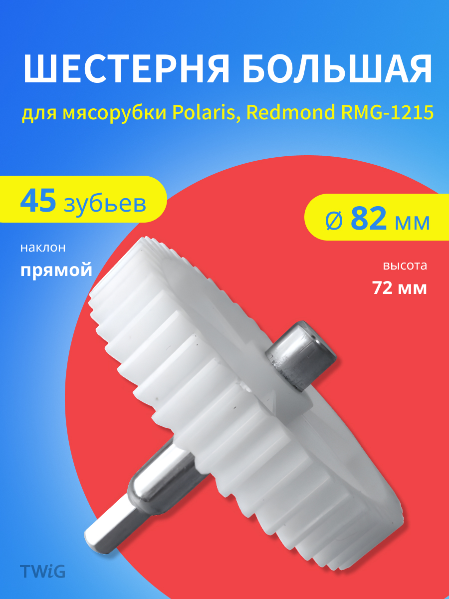 Шестерня большая (ведущая) для мясорубки Polaris, Redmond, диаметр 82 мм, 45 зубьев, с металлической осью