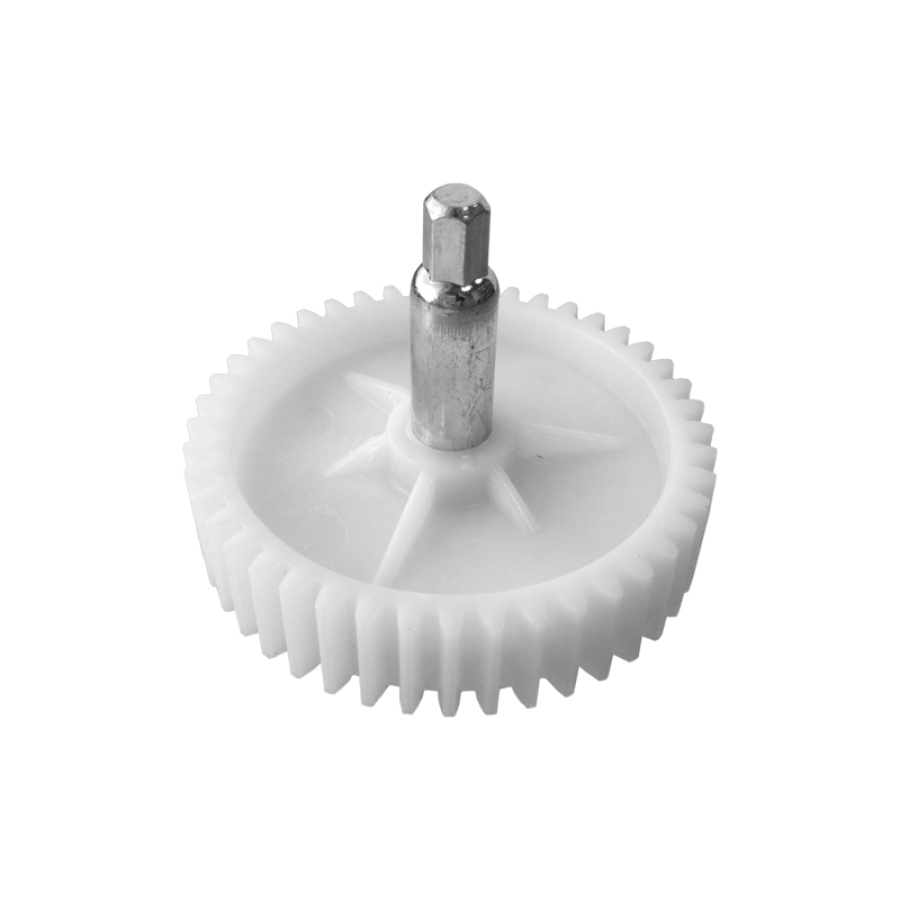 Изделие изготовлено из высококачественного пластика, рассчитанного на длительную эксплуатацию в режиме интенсивных нагрузок. Внешний диаметр составляет 78 мм, высота конструкции — 72 мм. Шестерня оснащена 44 зубьями с прямым наклоном, что гарантирует точное зацепление с ведущей шестерней и эффективную передачу крутящего момента в редукторе. Увеличенная высота детали обеспечивает дополнительную прочность и устойчивость к боковым нагрузкам. Геометрия зубьев разработана таким образом, чтобы минимизировать трение и обеспечить плавное вращение механизма без рывков.