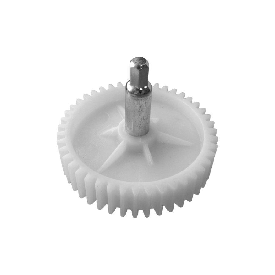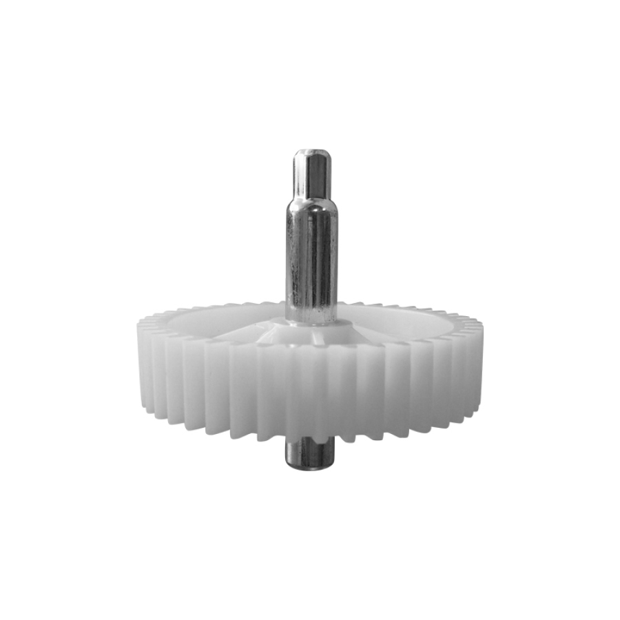 Изделие изготовлено из прочного пластика, адаптированного для работы в условиях постоянных механических нагрузок и температурных воздействий. Внешний диаметр детали составляет 78 мм, высота конструкции — 72 мм. Шестерня оснащена 44 зубьями с прямым наклоном, что обеспечивает надёжное зацепление с приводной шестерней и точную передачу вращательного момента в редукторе мясорубки. Увеличенная высота конструкции повышает жёсткость детали и её устойчивость к деформациям под нагрузкой. Стандартная геометрия зубьев гарантирует отсутствие люфтов и плавную работу механизма.