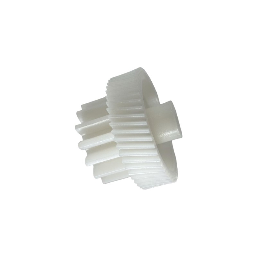 Размеры соответствуют оригиналу: диаметры ступеней 34/45 мм, высота 36 мм, 15/54 зубьев с комбинированным профилем (прямой/косой). Деталь выполнена из износостойкого пластика для длительной работы без деформаций.