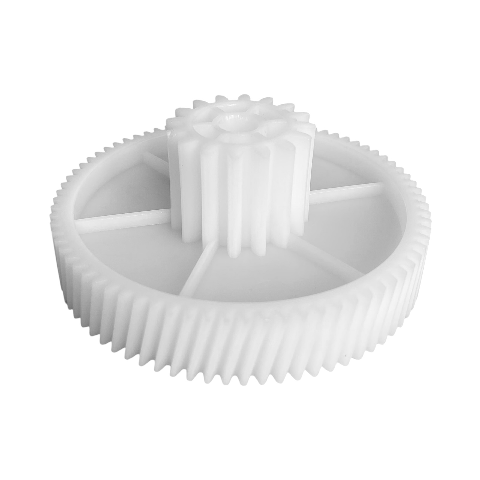 Средняя шестерня редуктора предназначена для передачи крутящего момента в бытовых мясорубках. Изготовлена из прочного пластика с пищевым допуском. Конструкция с двумя венцами зубьев (прямой и косой профиль) обеспечивает плавную и стабильную работу привода.