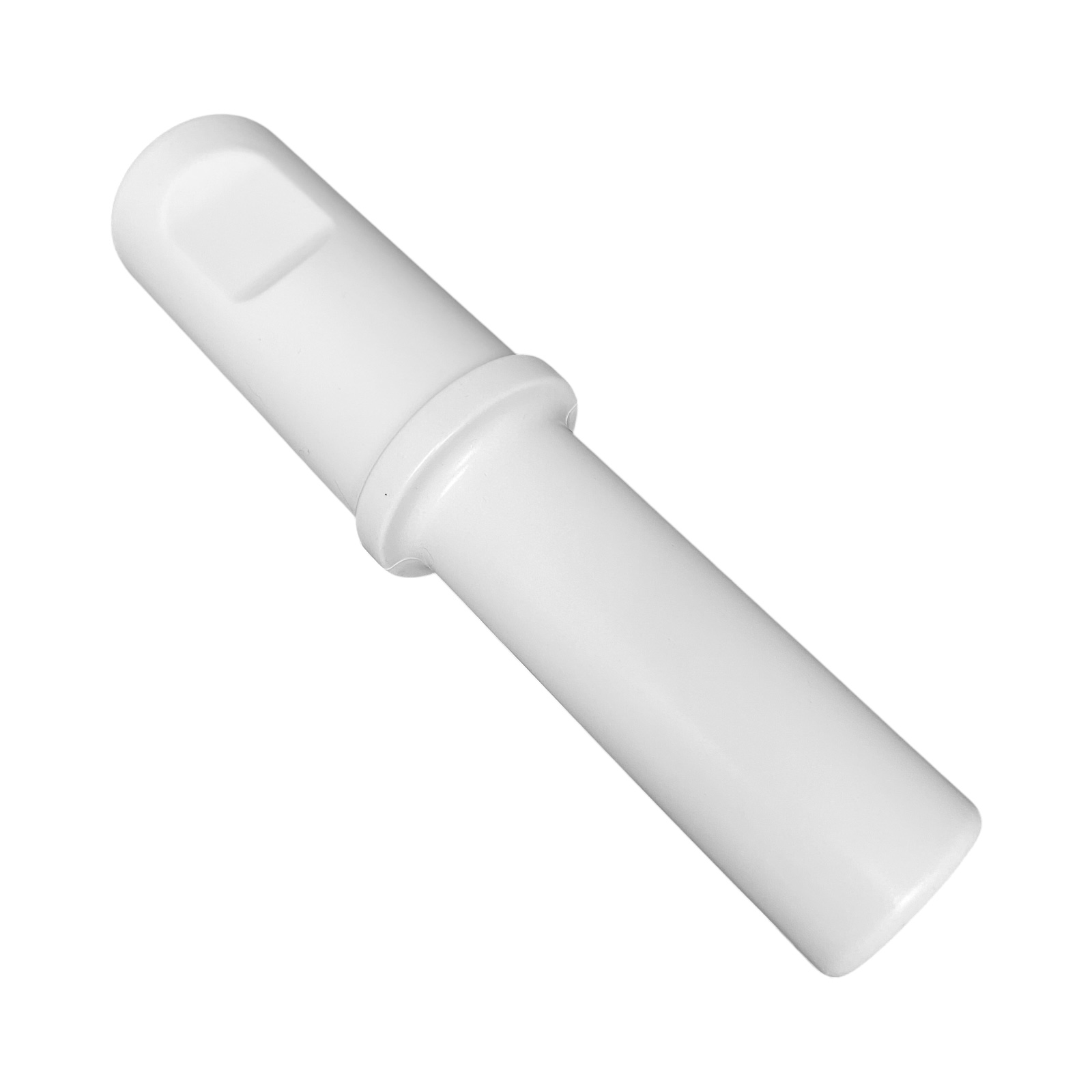Толкатель исключает необходимость применения вилок или других подручных средств, предотвращая повреждение мясорубки и травмы пользователя. Выполнен из прочного белого пластика, устойчивого к нагрузкам и долговечного в эксплуатации.