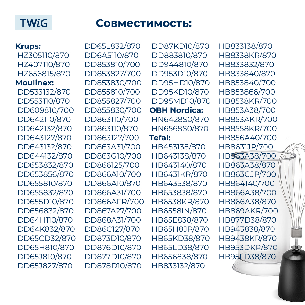 Совместимость: Krups, Moulinex, OBH Nordica, SEB, Tefal