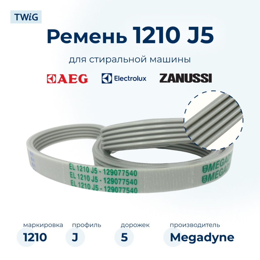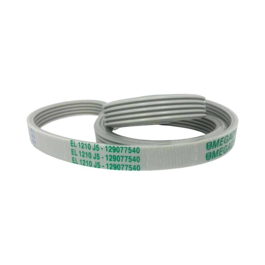 Приводной ремень Megadyne 1210 J5 подходит для стиральных машин AEG, Electrolux и Zanussi, обеспечивая эффективную передачу крутящего момента от двигателя к барабану. С профилем J и 5 ручейками, ремень устойчив к нагрузкам, возникающим во время работы устройства. Длина ремня в новом, нерастянутом состоянии составляет 1143 мм, требует растяжения при установке для оптимального натяжения.