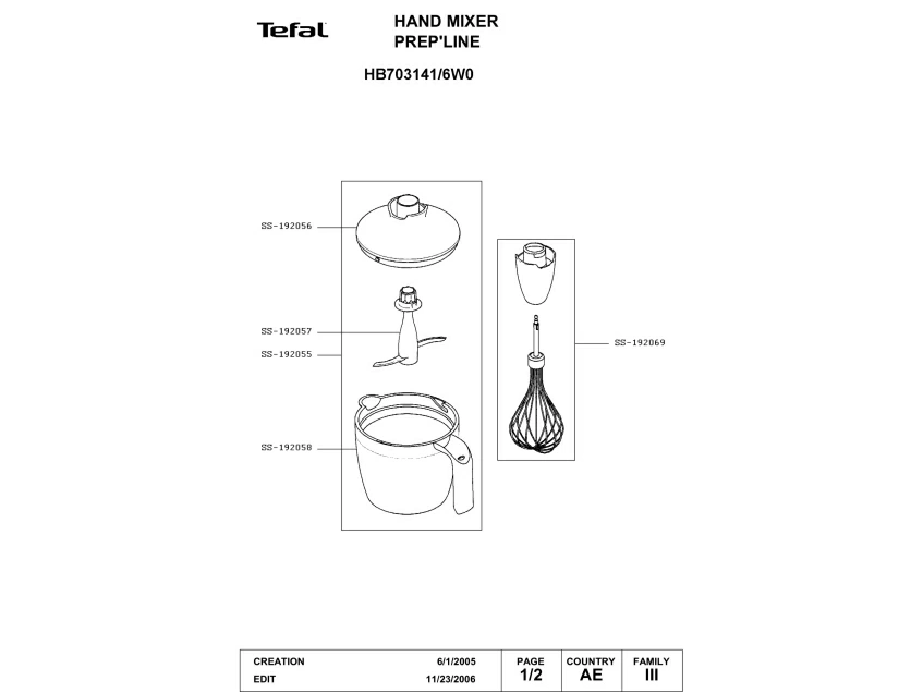 Запчасти для блендера Tefal HB703141/6W0 (HB703141-6W0-2)