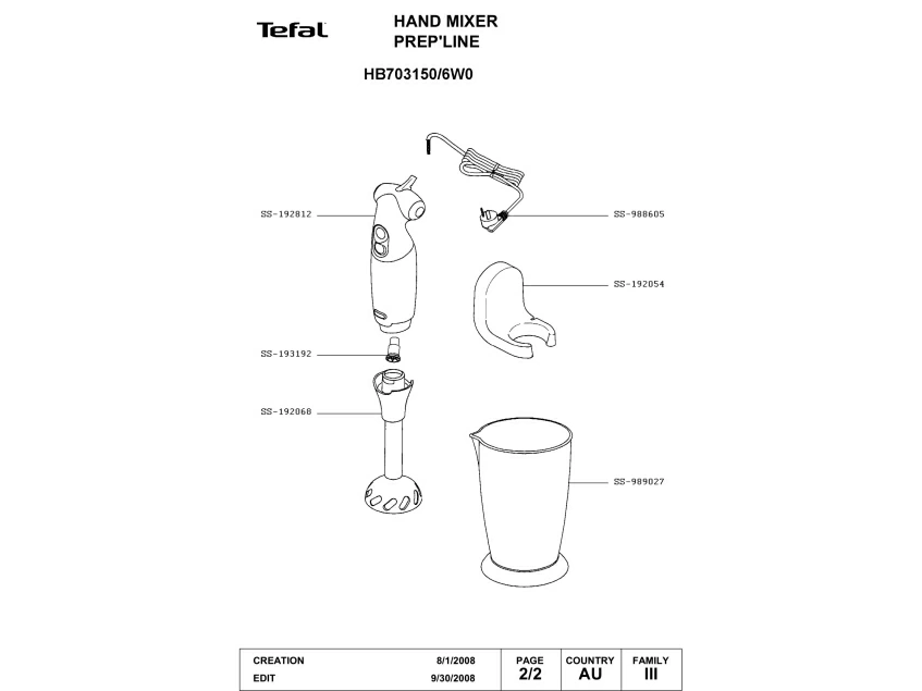 Запчасти для блендера Tefal HB703150/6W0 (HB703150-6W0-1)