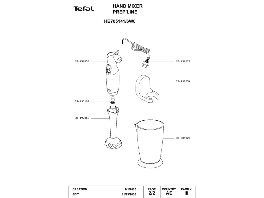 Запчасти для блендера Tefal HB705141/6W0 (HB705141-6W0-1)