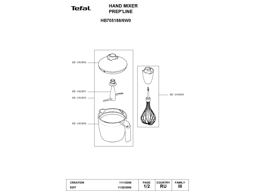 Запчасти для блендера Tefal HB705188/6W0 (HB705188-6W0-2)
