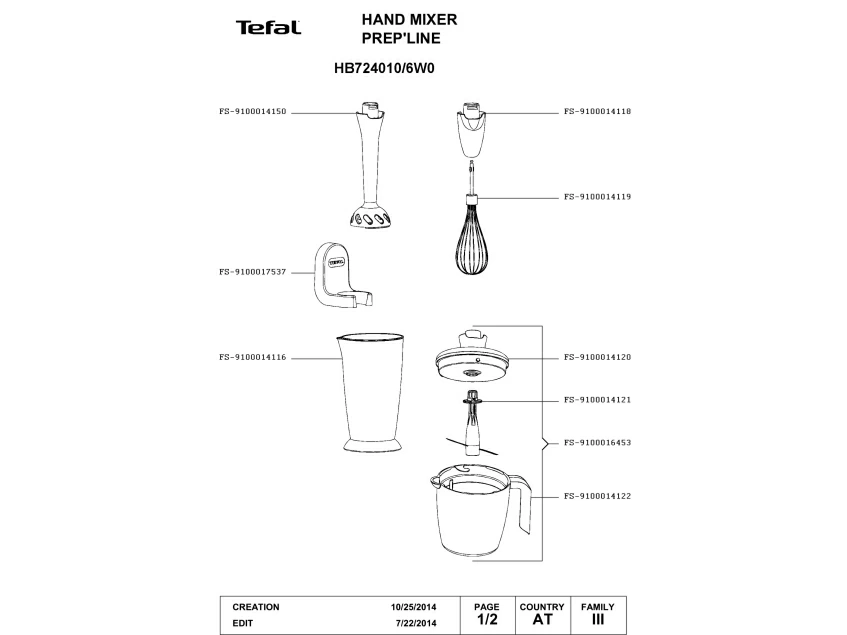 Запчасти для блендера Tefal HB724010/6W0 (HB724010-6W0-2)