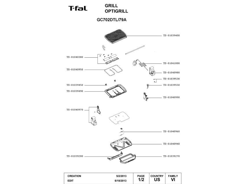 Запчасти для электрогриля Tefal GC702DTL/79A (GC702DTL-79A)