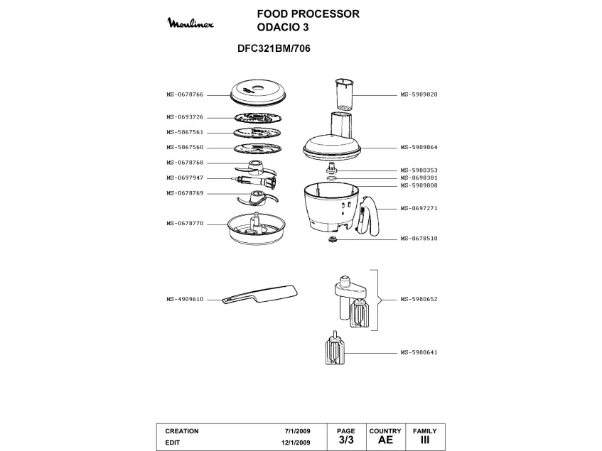 Запчасти для кухонного комбайна Moulinex DFC321BM/706 (DFC321BM-706-3)