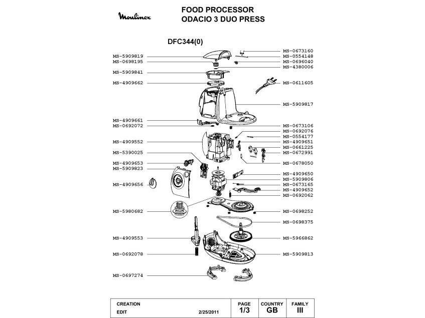 Запчасти для кухонного комбайна Moulinex DFC344(0) (DFC344(0)-1)