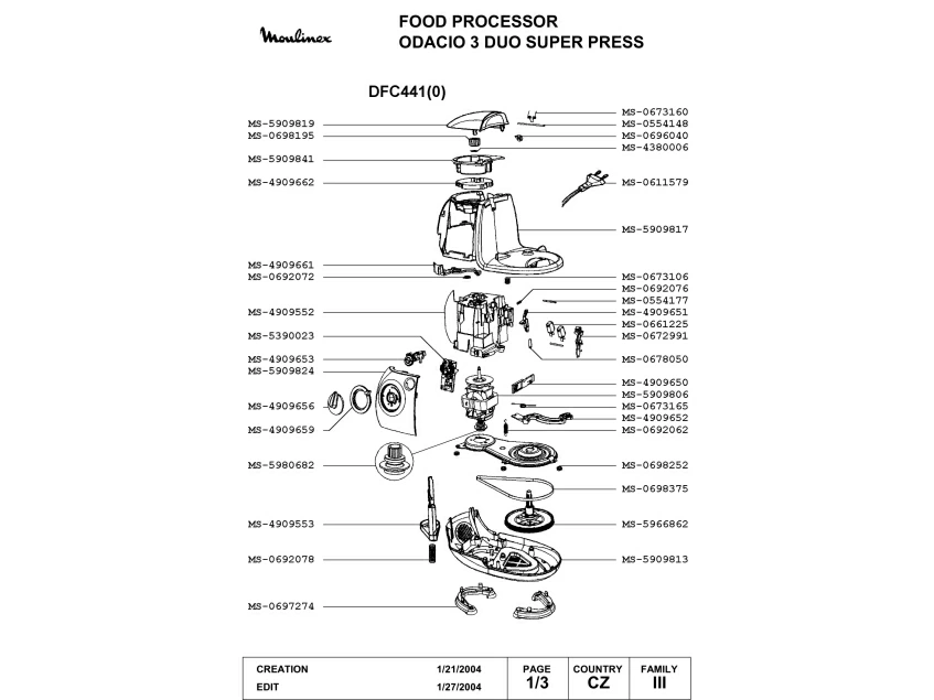 Запчасти для кухонного комбайна Moulinex DFC447(0) (DFC447(0)-1)