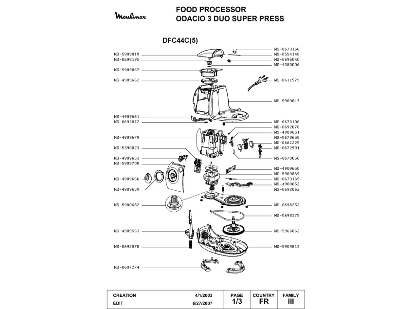 Запчасти для кухонного комбайна Moulinex DFC44C(5) (DFC44C(5)-1)