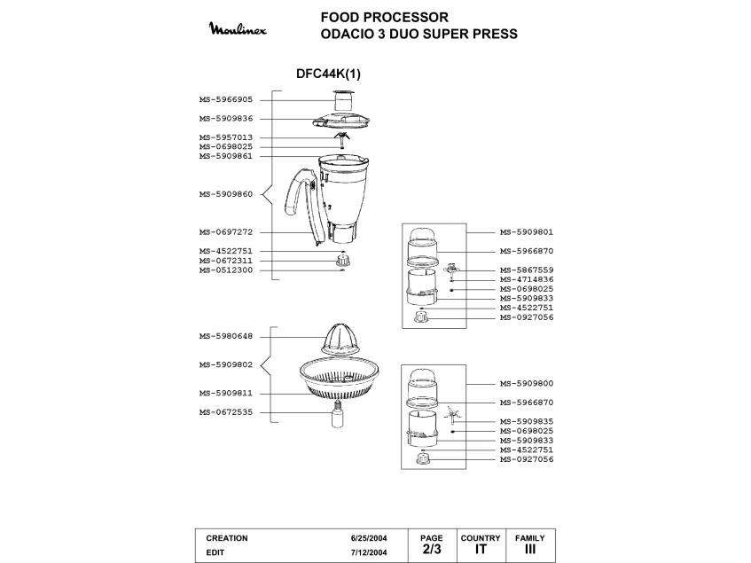 Запчасти для кухонного комбайна Moulinex DFC44K(1) (DFC44K(1)-2)