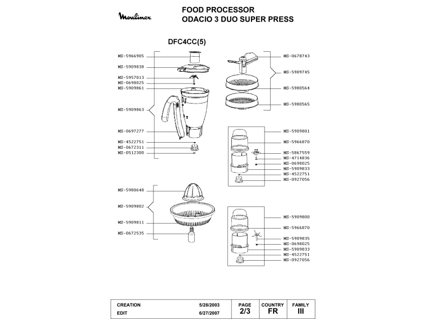 Запчасти для кухонного комбайна Moulinex DFC4CC(5) (DFC4CC(5)-2)