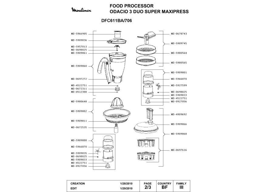 Запчасти для кухонного комбайна Moulinex DFC611BA/706 (DFC611BA-706-2)