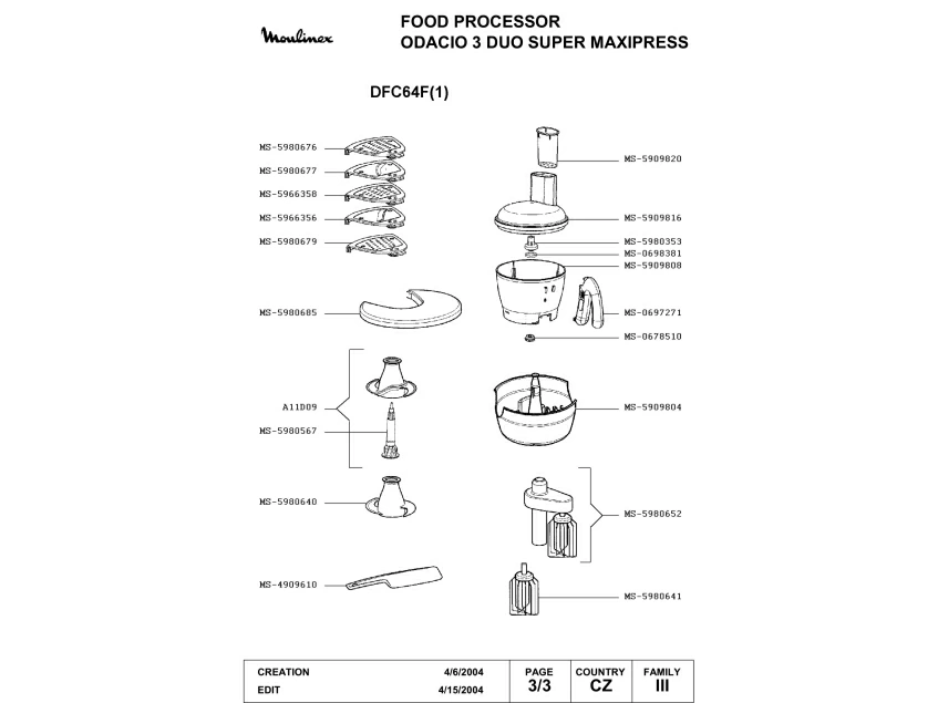 Запчасти для кухонного комбайна Moulinex DFC64F(1) (DFC64F(1)-3)