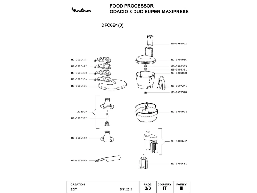 Запчасти для кухонного комбайна Moulinex DFC6B1(0) (DFC6B1(0)-3)
