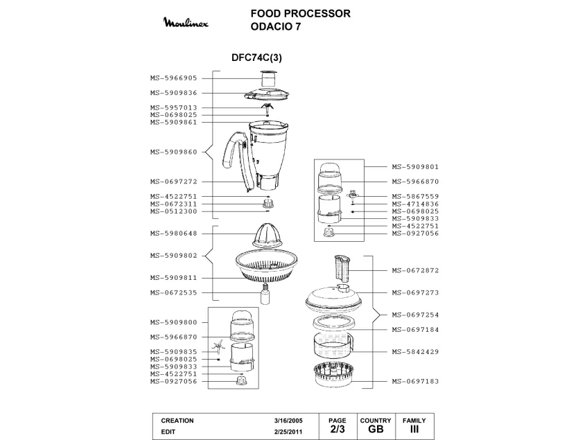 Запчасти для кухонного комбайна Moulinex DFC74C(3) (DFC74C(3)-2)