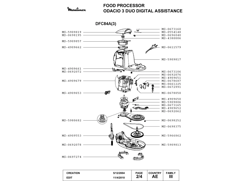 Запчасти для кухонного комбайна Moulinex DFC84A(3) (DFC84A(3)-2)
