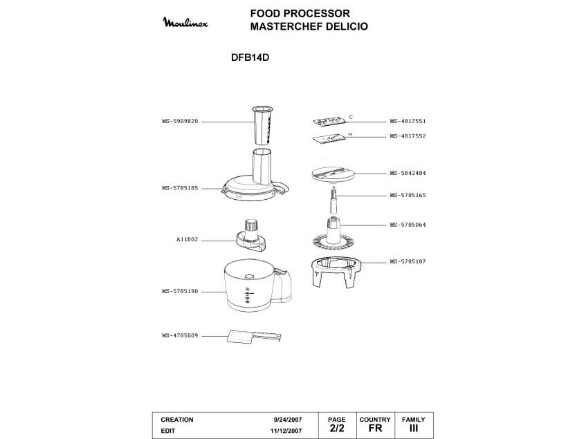 Запчасти для кухонного комбайна Moulinex DFB14D (DFB14D-2)