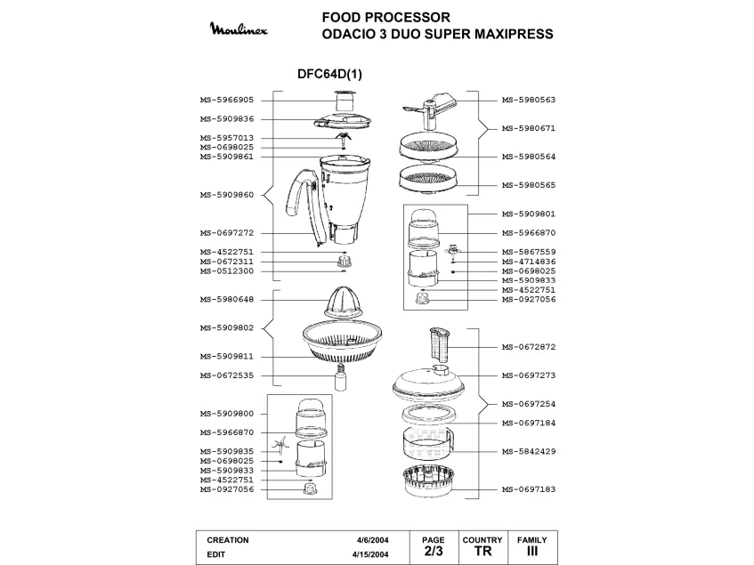 Запчасти для кухонного комбайна Moulinex DFC64D(1) (DFC64D(1)-2)