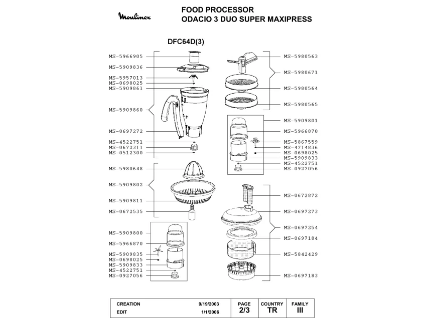 Запчасти для кухонного комбайна Moulinex DFC64D(3) (DFC64D(3)-2)