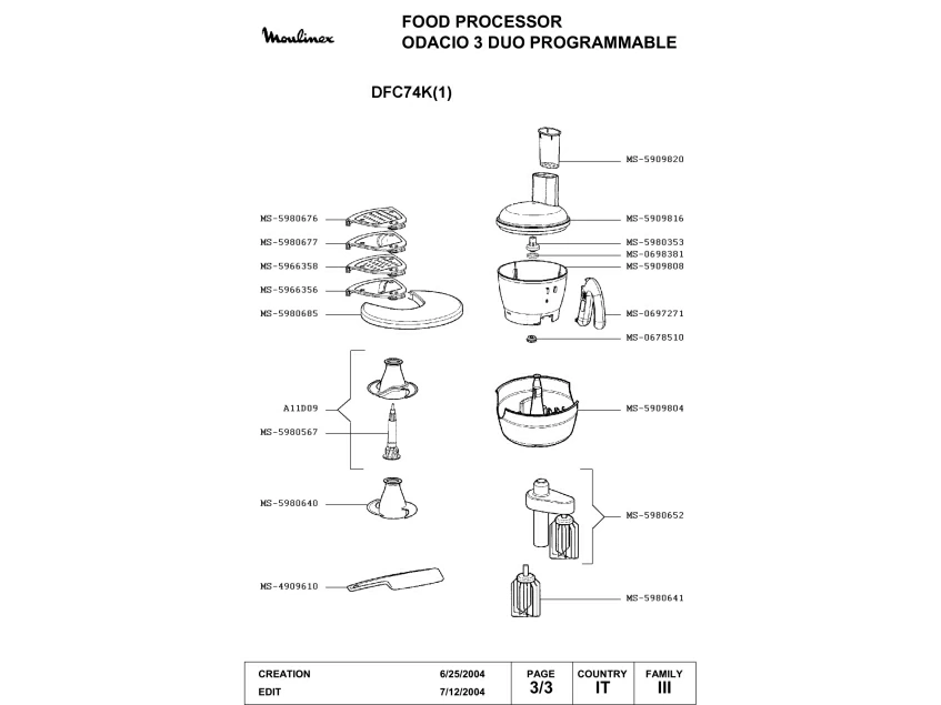 Запчасти для кухонного комбайна Moulinex DFC74K(1) (DFC74K(1)-3)