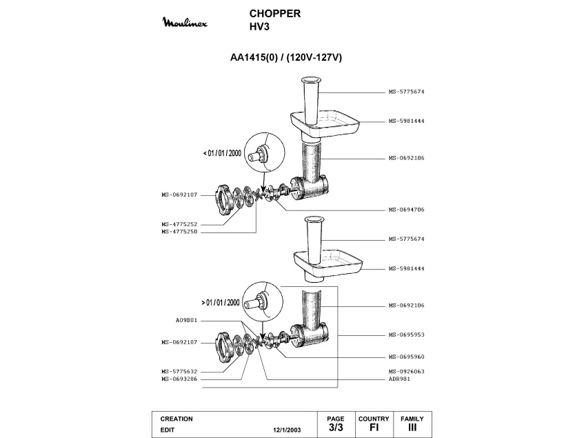 Запчасти для мясорубки Moulinex AA1415(0) (AA1415(0)_2)