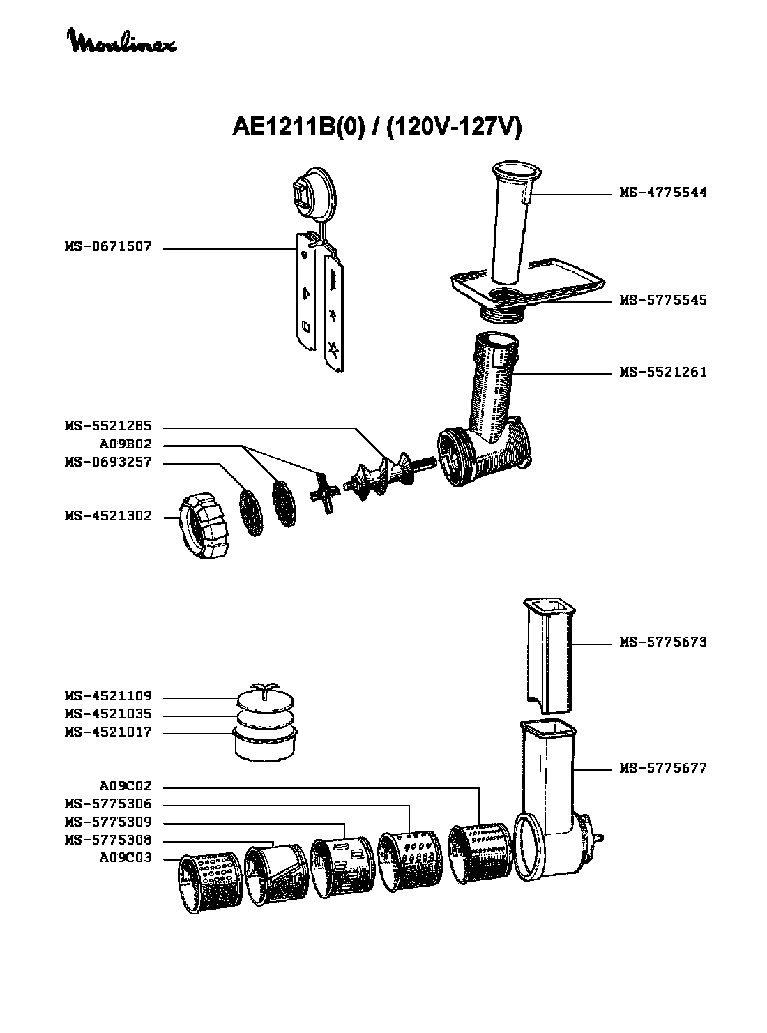 Запчасти для мясорубки Moulinex AE1211B(0)