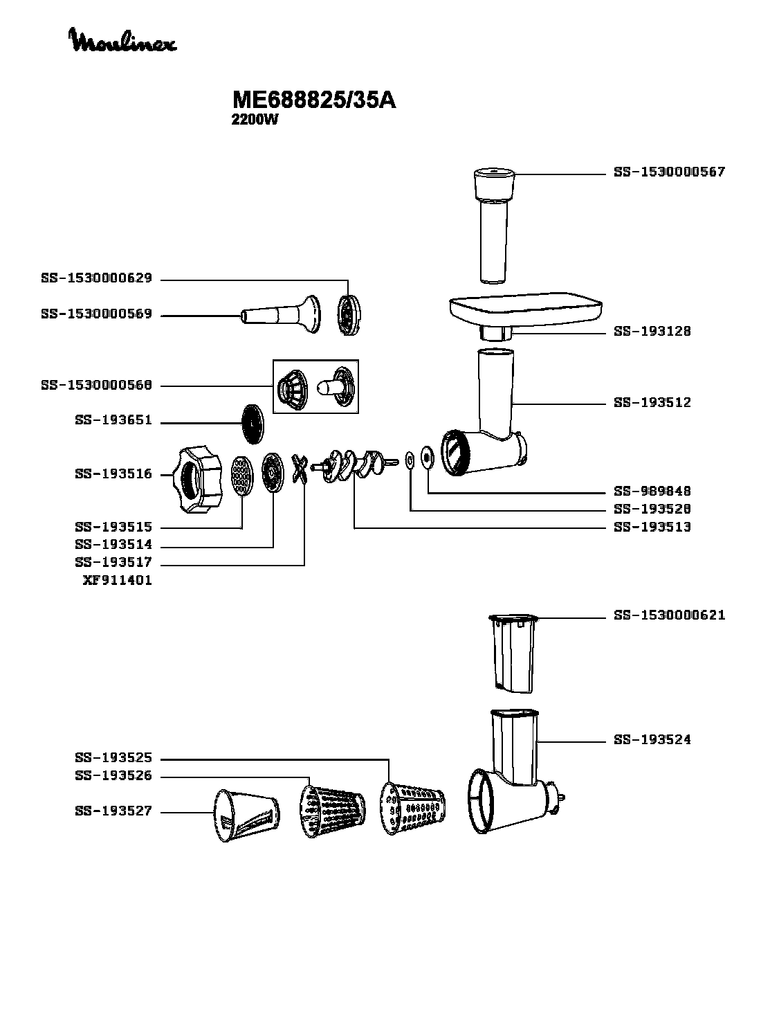 Запчасти для мясорубки Moulinex ME688825/35A