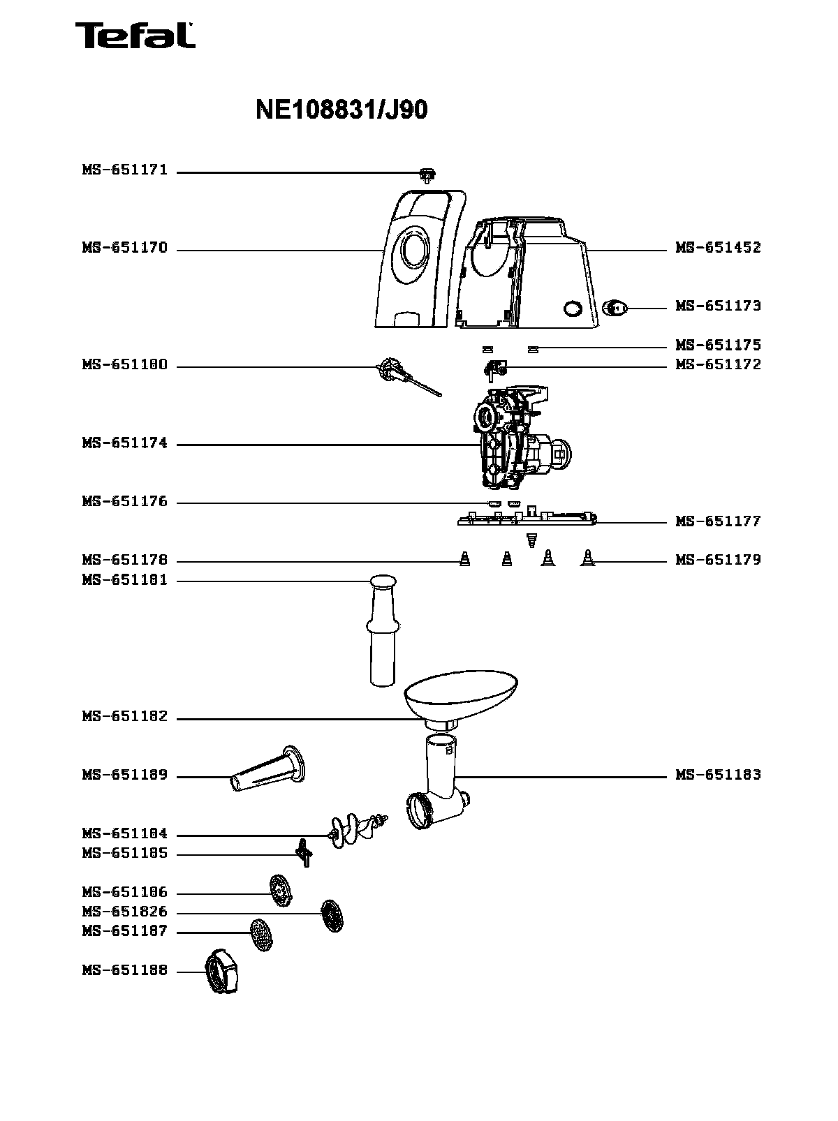 Запчасти для мясорубки Tefal NE108831/J90