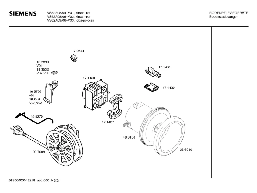 Запчасти для Siemens VS62A09/06 (58300000046218_aet_000_b_02)