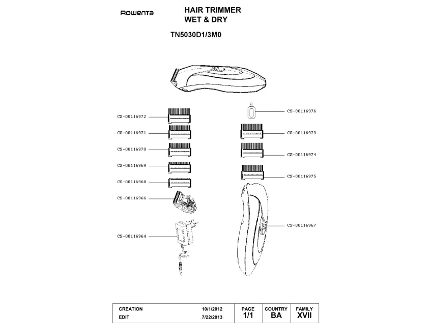 Запчасти для триммера Rowenta TN5030D1/3M0 (TN5030D1-3M0)